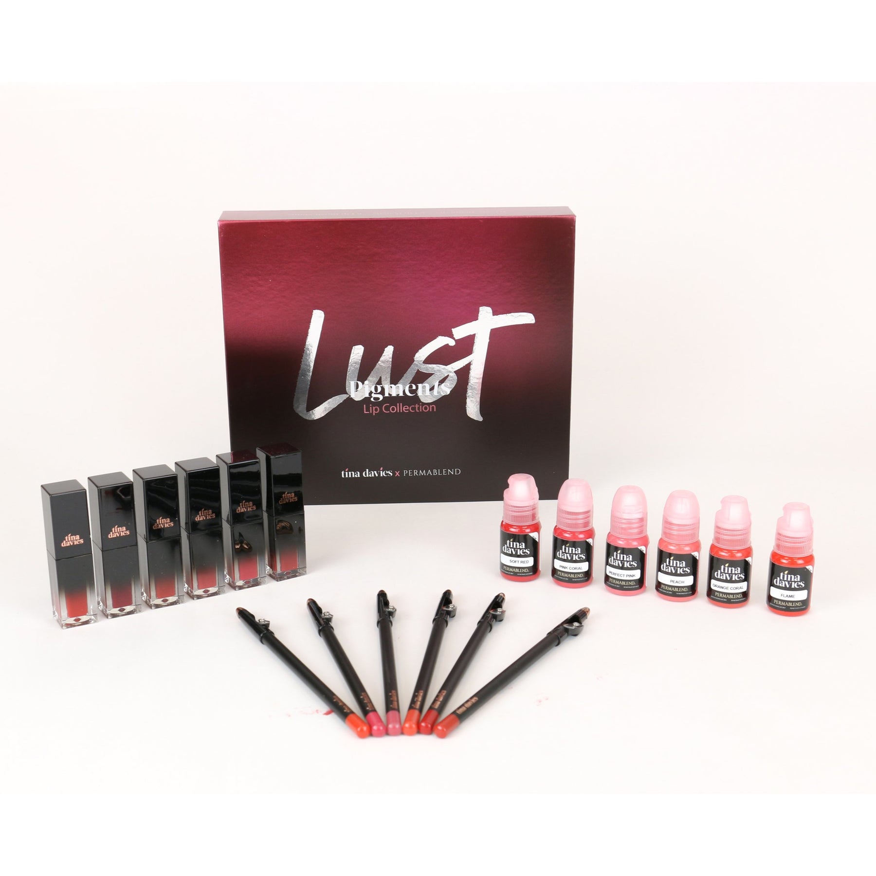The Tina Davies I ๐ INK LUST ย Lip Collection, ย featuring a variety of modern-wearable shades, from everyday neutrals, warm corals, to deep berry tones. Elevate your consultation by allowing clients to TRY IT with our smudge-proof Lip Blush Stains before committing. DRAW IT using the matching highly-pigmented Lip Pencils and INK IT with our highly-concentrated pigments that deliver beautiful long-lasting color. Bonus! Offer the matching Lip Blush Stain to clients to BLUSH IT post-procedure to boost their lip color. With each perfectly matched step, your clients are guaranteed beautiful results that last